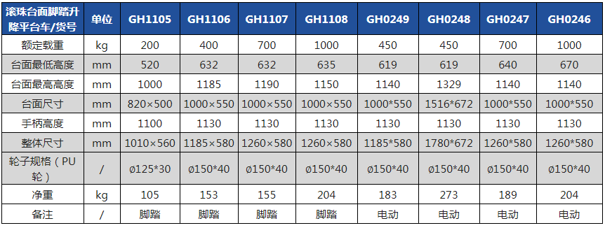 冠航牌滾珠式腳踏/電動(dòng)升降平臺(tái)貨物搬運(yùn)車
